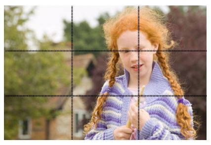Here the subject's eye, and the tip of the magic wand she is holding, lie (more or less) at two of the intersection points of the lines that divide the frame into thirds. Arguably the chimney of the house in the background lies on one of the other intersection points, but that was just a coincidence.